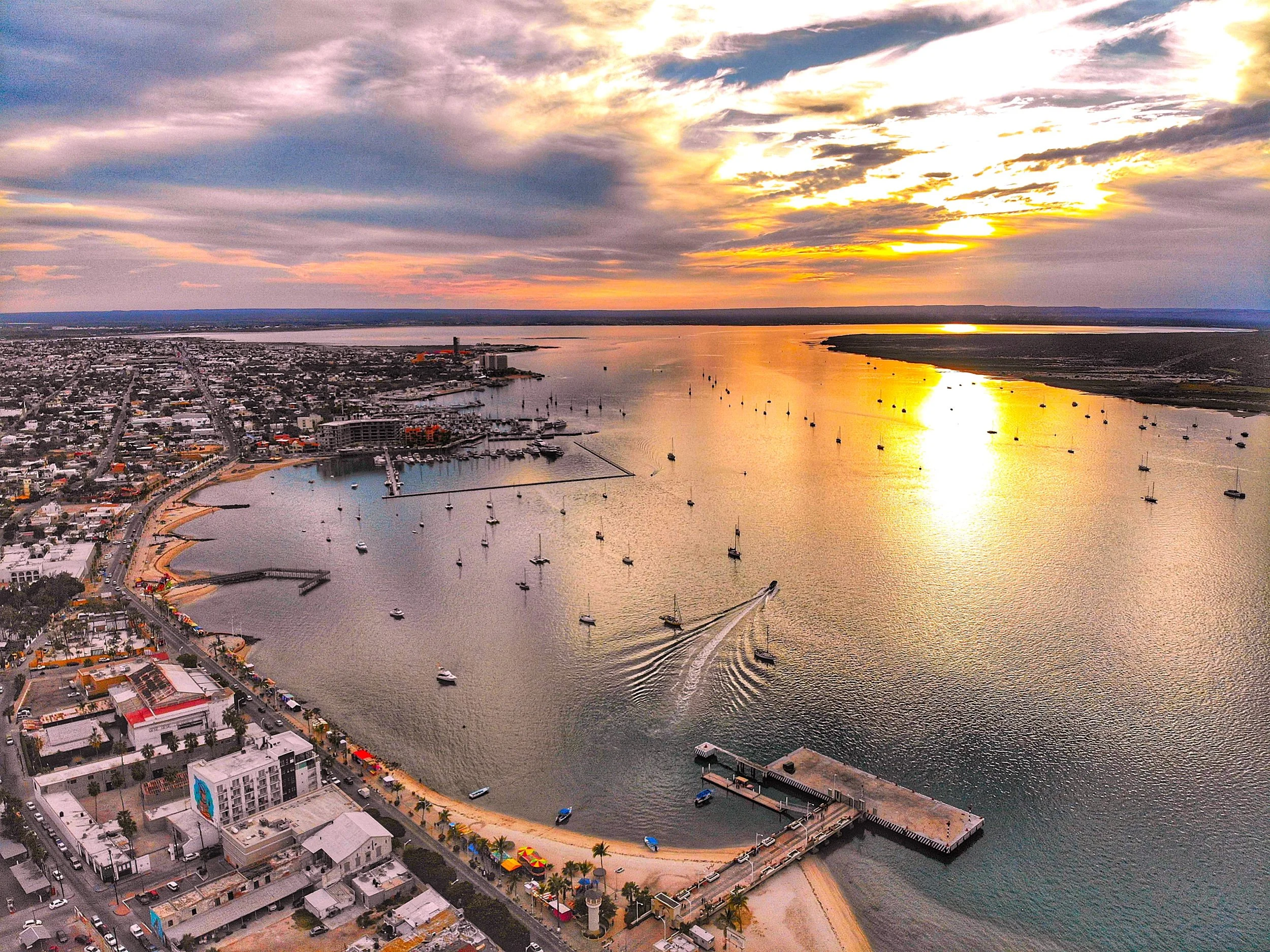 Drone shot of downtown La Paz. The water is extremely calm here, because we’re tucked into a double bay off the Sea of Cortez, or now Gulf of California, which is itself pretty calm. It’s a great place to bring kids because the water is so calm and the beaches slope so gently into the water, you can walk out really far in a lot of places. And it’s a good deal safer than most of Mexico. At any rate, I was going to say that the water is still at the same level, and it comes right up to the main road. More or less unchanged for 500 years.